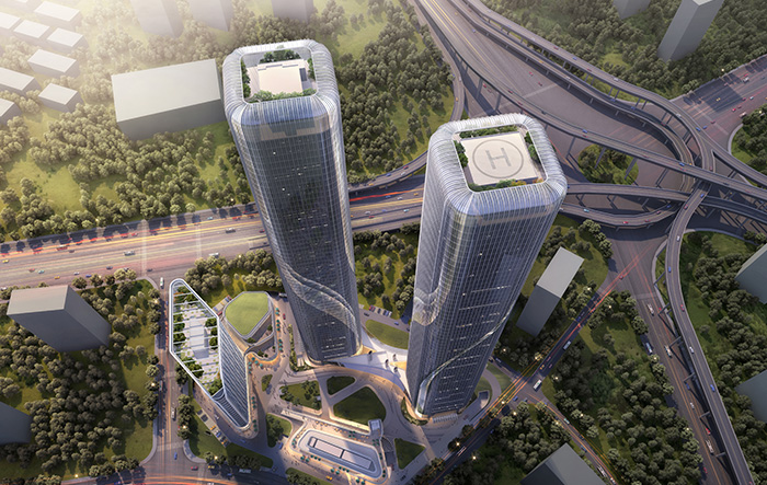 智慧之门包含两栋超高层双子塔,定位杭州市城市入口门户建筑,